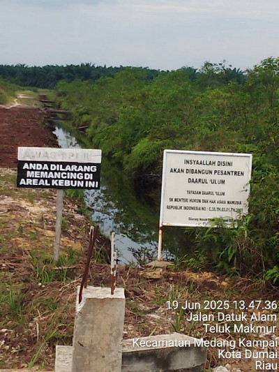 Di dekat lahan kebun sawit Sucipto Andra dan Acin ini akan didirikan pula sebuah Pesantren di lahan Hutan Taman Wisata dan Hutan Konservasi Dumai ini sudah mengantongi SK Menkumham RI (lihat foto).