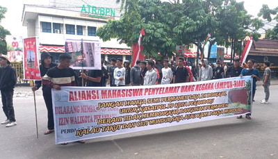 Pekanbaru, Detak Indonesia--Ratusan pedagang Jalan Sudirman seberang Jembatan Siak IV Pekanbaru bergabung dengan aktivis mahasiswa melancarkan aksi unjukrasa ke Kantor Satpol PP Jalan Cut Nyak Dhin II Pekanbaru, Senin petang (8/9/2025).