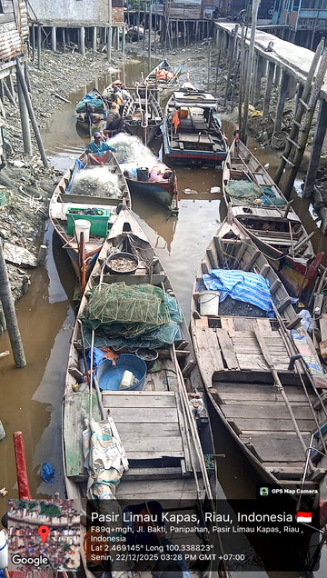 Panipahan, Detak Indonesia--Hasil perikanan laut di lepas pantai timur Sumatera di kota terapung Panipahan Kecamatan Pasir Limau Kapas, Kabupaten Rokanhilir (Rohil) Riau menyusut menjelang Natal 25 Desember 2025 dan jelang Tahun Baru 1 Januari 2026.