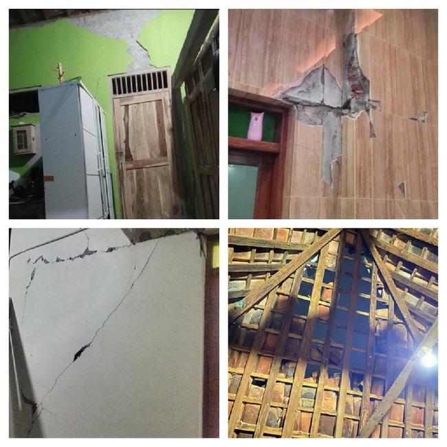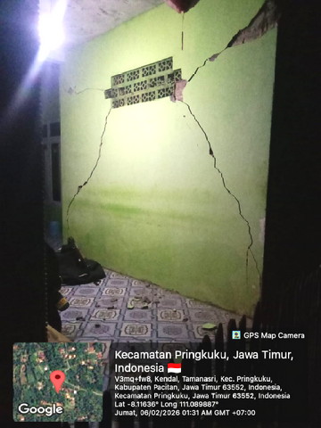 Sejumlah bangunan rusak akibat gempa, di Pacitan Jawa Timur, Jumat (6/2/2026) pukul 01.06 WIB dinihari tadi. (Sumber: BPBD Pacitan).