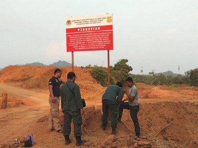 Tim Gabungan KLHK dan Polda Kalbar, 20 Agustus 2018 menggerebek pertambangan bauksit tanpa izin menteri di Hutan Produksi Konversi (HPK) Sungai Tulak dilakukan PT Laman Mining di Kecamatan Matan Hilir Utara, Kabupaten Ketapang, Kalimantan Barat. (Foto Hum