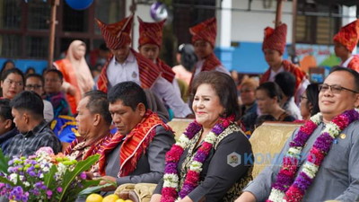 Kabanjahe, Detak Indonesia--Bupati Karo Cory Sriwaty Sebayang buka acara Panen Karya SMP Negeri 2 Kabanjahe 2023 yang mengusung tema "Kearifan Lokal, Bhinneka Tunggal Ika dan Kewirausahaan", kegiatan ini diselenggarakan di SMPN 2 Kabanjahe, Kabupaten Karo, Provinsi Sumatera Utara Jumat (24/11/2023).