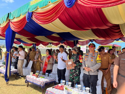 Laubaleng, Detak Indonesia--Bupati Cory Sriwaty Sebayang bersama Kapolres Tanah Karo AKBP Wahyudi Rahman SH SIK MM, menghadiri kegiatan pembukaan TNI Manunggal Membangun Desa (TMMD) ke - 119 Tahun 2024 Kodim 0205/TK, kegiatan tersebut dilaksanakan di Lapangan SMP Desa Perbulan, Kecamatan Laubaleng, Kabupaten Karo, Provinsi Sumatera Utara, Selasa (20/2/2024).