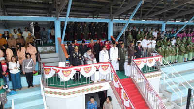 Kabanjahe, Detak Indonesia--Peringatan Hari Ulang Tahun (HUT) ke-79 Kemerdekaan Republik Indonesia di Kabupaten Karo berlangsung dengan penuh khidmat. Seperti tahun tahun sebelumnya, apacara tersebut dipimpin oleh Bupati Karo Cory Sriwaty Sebayang digelar di Stadion Bola Samura Kabanjahe, Provinsi Sumatera Utara, Sabtu (17/8/2024) pukul 10.00 WIB.