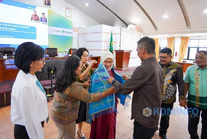 Dalam kesempatan ini Wakil Bupati Karo juga berkesempatan memberikan cendramata kepada Direktur Jenderal Kesehatan Masyarakat, Kementerian Kesehatan Republik Indonesia yang diwakili oleh Kepala BBLKM Palembang dan Usaid Momentum Sumut berupa uis nipes dilanjutkan dengan foto bersama.