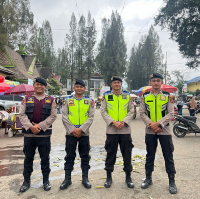 Personel diterjunkan untuk menjaga kenyamanan wisatawan dan kelancaran lalulintas di berbagai titik strategis wilayah hukum Polres Tanah Karo, Provinsi Sumatera Utara Senin (30/12/2024).