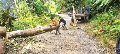 Seperti yang terjadi beberapa waktu lalu, penebangan pohon dilakukan persis di tepi jalan lintas Pakkat - Aek Riman (Pinim), masuk wilayah Kecamatan Tarabintang. Di mana pekerja illegal logging
