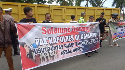 Warga antara lain meminta Kapolres Kampar yang baru AKBP Mihardi Mirwan SH SIK MM mengeluarkan orang bayaran Rusdi dari Tanah Ulayat Persukuan Melayu Datuok Mudo.