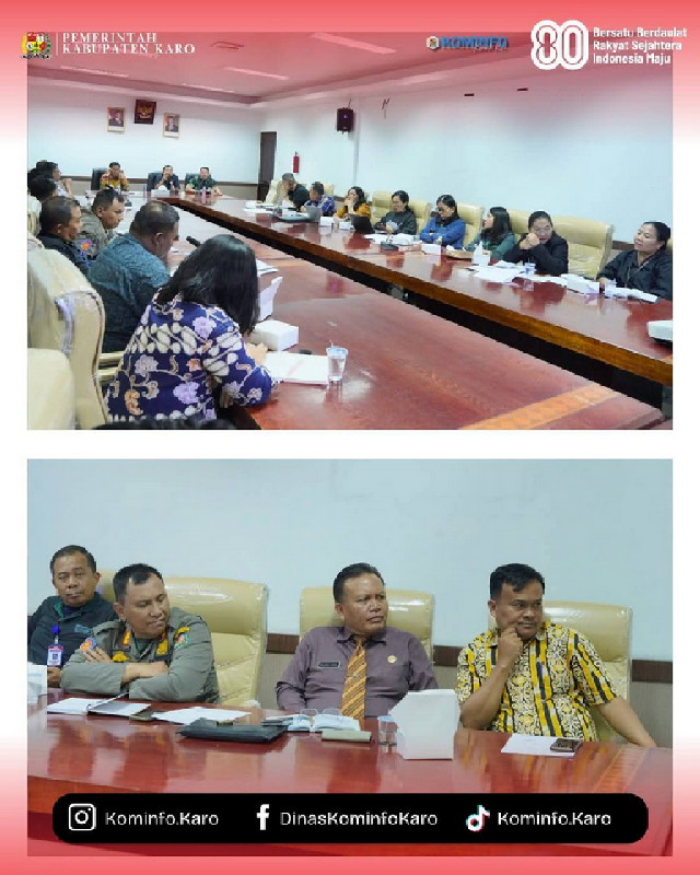 Kabanjahe, Detak Indonesia--Wakil Bupati Karo, Komando Tarigan SP didampingi oleh Pj Sekda Karo, Dr Drs Eddi Surianta Surbakti Mpd memimpin Rapat Pembahasan Kerjasama Pemanfaatan Aset Lahan untuk Ketahanan Pangan yang dilaksanakan di Ruang Rapat Bupati Karo, Provinsi Sumatera Utara, Jumat, (22/8/2025)