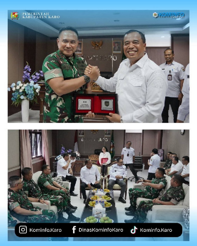 Setelah kegiatan sertijab, Pangdam I/BB berkunjung ke Kantor Bupati Karo dan disambut hangat oleh Bupati Karo didampingi Wakil Bupati Karo, Sekda Kabupaten Karo, dan sejumlah pejabat daerah. Kunjungan berlangsung dalam suasana penuh keakraban, pertemuan ini diharapkan dapat meningkatkan kolaborasi dan sinergi antara Kabupaten Karo dan TNI dalam menjaga keamanan, juga membangun Kabupaten Karo yang lebih unggul. Pertemuan diakhiri dengan pemberian cendera mata sebagai tanda kehormatan dan mempererat hubungan silaturahmi.(stm)