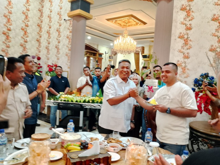 Muhammad Rahul mengatakan bahwa bupati Anton menyambutnya malam ini dengan baju putih berkantong empat yang menjadi ciri khasnya Ketua Umum Partai Gerindra, mungkin saja pak bupati mau. Jelas Rahul sambil tertawa bersama Bupati Rokan hulu Anton. (ary)