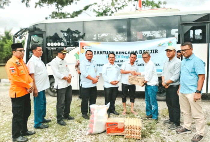 Sengkemang, Detak Indonesia -- Sub Holding PTPN IV PalmCo melalui entitasnya yang beroperasi di Provinsi Riau, PTPN IV Regional III menyalurkan bantuan 1,5 ton bahan pangan pokok kepada 213 kepala keluarga terdampak banjir di Kampung Sengkemang, Kecamatan Koto Gasib, Kabupaten Siak, Provinsi Riau.