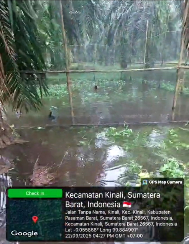 Kebun sawit Syafrizal alias Buyung di Kinali digenangi limbah cair PT SBS.