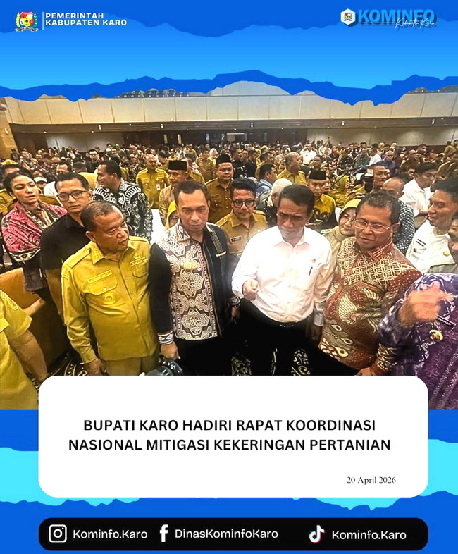 Dalam kesempatan tersebut, Bupati Karo hadir bersama Kepala Dinas Pertanian Kabupaten Karo, Michael Purba STP MM, guna menyampaikan usulan sarana dan prasarana yang dibutuhkan dalam menghadapi potensi kekeringan, khususnya pada sektor pertanian di Kabupaten Karo, Sumut.