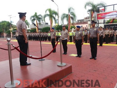 DUMAI, Detakindonesia - Upacara kenaikan pangkat personil Polri Polres Dumai dipimpin langsung oleh Kapolres Dumai AKBP Perdamaean Nainggolan, SIK, dan diikuti oleh Waka Polres Dumai Kompol Yudho Palmi, DJ, PJU Polres Dumai, para kasat Polres Dumai, Kapolsek Jajaran Polres Dumai, Personil Polres Dumai, serta Bhayangkari Polres Dumai yang berjumlah lebih kurang 300 orang, Senin ( 2/7/2018).