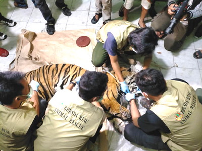 Kepala Balai Besar KSDA Riau segera memerintahkan Tim langsung bergerak ke lokasi ditemukannya Harimau Sumatera, sayang satwa tersebut sudah dalam kondisi mati dengan kaki depan kanan terjerat dan sudah dipenuhi lalat serta belatung.