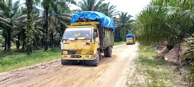 Lima Truk Angkut Sawit Keluar Lagi dari Kebun Sawit Ayau