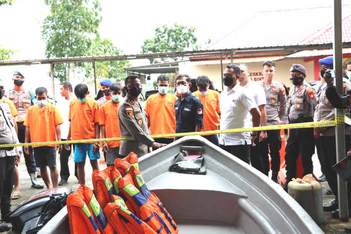 Kapolres Bintan AKBP Tidar Wulung Dahono SH SIK M H menjelaskan bahwa 7 tersangka yang telah diamankan berinisial SM, JD, SD, SH, YS, RN, dan VM beserta barang bukti yang diamankan yaitu satu unit mobil Brio warna silver,  satu unit mobil Proton Exora warna ungu, satu unit kapal Speed Fiber warna abu- abu beserta mesin 40 PK merk Yamaha.